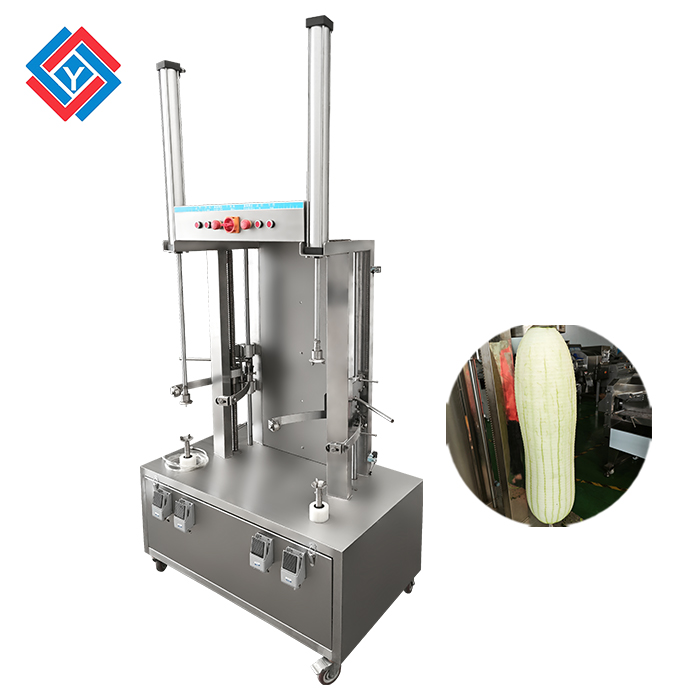 本機適用于木瓜、哈密瓜、西瓜等瓜果削皮,削皮厚薄可調,方便。刀組上下自動循環(huán)削切效率高,去皮率達到95%以上。削皮刀架設計,可使瓜皮定向排出,方便收集清理。機器拆洗方便,使用時操作簡單,衛(wèi)生,適合餐飲行業(yè),飯?zhí)?,食品加工廠使用。