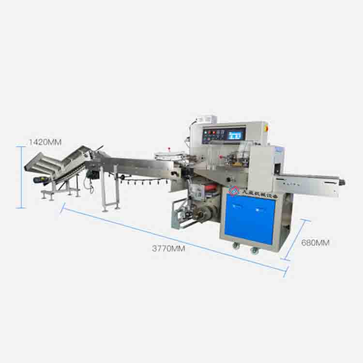 技術(shù)參數(shù): 型號(hào):JYB-350 袋子形狀:背帶式包裝(可定制) 縱封/橫封紋路:網(wǎng)紋式包裝/直紋式包裝 卷膜直徑:350mm 制袋寬度:50-160mm 可選配置:打碼機(jī) 充氣裝置 烙餅器 料理機(jī) 包裝材料:能單面熱封包裝膜材料 電壓:220V 功率:2.6kw 機(jī)器尺寸:4020*770*1450mm 機(jī)器重量:580kg 制袋長度:65-190/120-280mm